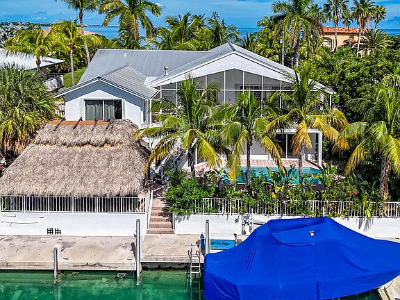 Duck Key Dream home with quick Ocean Access by boat. Spacious living areas with Cathedral Ceilings, and an open floor plan living space on the 2nd floor. Interior Staircase connects the floors with a secondary living space off the pool and Tiki Hut areas. 2 bedrooms on the upper level and 2 more bedrooms on the lower level give you lots of space for guests. And air-conditioned garage for all your fishing gear and toys. 20,000 lb boat lift included. Plus a second garage for a vehicle or golf cart. This is a must-see.Owner financing is possible with 20% down interest only payments 5- 7 year balloon at 5% interest. What a great way to buy a home!