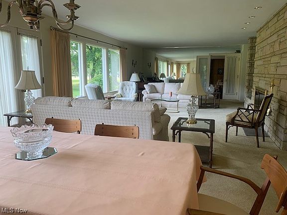 This mid-century modern home has a great view of Trumbull Country Club golf course & a shed that holds a golf cart. Spacious open dining room/living room w/windows across the back for a gorgeous view. Also a family room for more living space. Spacious eat-in kitchen & laundry. 2 large bedrooms each with full baths complete first floor. Upstairs are 2 additional bedrooms w/full bath.