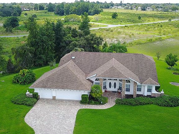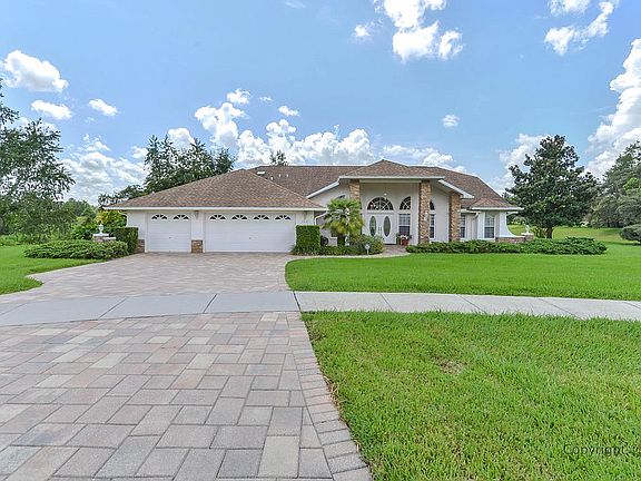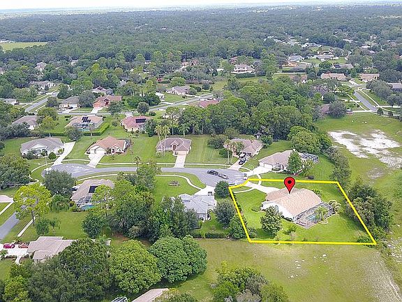 Active with Contract Tucked away in a quiet cul-de-sac and nestled on .60 acres this home is your final stop. Lush green grass and mature landscaping surround the home and the grand entryway gives the home great curb appeal. Inside is the perfect open floorplan. Large pillars separate rooms adding an elegant look. A formal living and dining room greet you to the left and right. A soaring ceiling with skylights really opens up the massive family room area. An office space is available that can also be used as a den, or even a 4th bedroom if needed. The guest bedrooms are very spacious in size and have ceiling fans above. The kitchen and breakfast nook have beautiful tile floors. The kitchen holds a double wall over, electric cooktop, nice cabinet and counterspace and a closet pantry. The master bedroom is huge and has a trey ceiling covering above. There are two closets one being a walk-in for added storage space. Dual sinks reside in the master bath along with a garden tub and walk-in shower. You can access the lanai from many areas of the home. The triple slider along the back really opens things up and brings the inside and outdoor living space together. Gorgeous large pavers surround the pool deck really bringing life to this area. More of the elegant pillars separate the pool area with the covered area. Ceiling fans are above to keel this area comfortable. An inground spa available to relax in or cool off in the pool and take in the stunning view of the backyard. This area is very private and also gives you the sweet sounds of nature. Put this one your must see list!