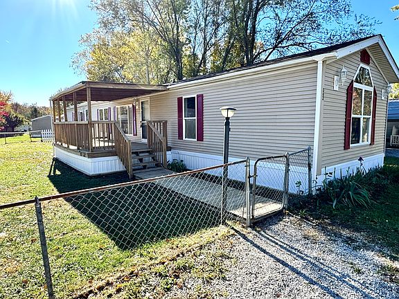 Recently remodeled & move in ready. This 3 bedroom 2 bath home has lots of "new"; New roof on the home & minibarn. Newer water heater & AC unit. Brand new exterior skirting with reinforced lumber backing. New vinyl plank flooring throughout, fresh paint throughout, new fixtures & new toilets. Eat in kitchen with appliances to remain. All rooms are very spacious with over 1,100 total sq ft. Covered front porch is ideal for relaxing and entertaining. Chain link fence is perfect for the pets. Within walking distance to the HOA pool, playground, shelter house & basketball court.
