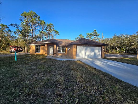 Come see this wonderfully styled, 3 bedroom, 2 bath, 2 car garage on a OVERSIZED .42 AC CORNER LOT in the very popular Silver Springs Shores area. This home features a split plan, high ceilings & QUARTZ STONE counters in the KITCHEN, BATHROOMS & WINDOW LEDGES! When you step in side, you will notice the open design with tall ceilings and a split floor plan. The primary bedroom features an oversized closet & en suite bathroom with A FULLY TILED, EZ ENTRY SHOWER & linen closet. The kitchen, has whisper quiet drawers & UPGRADED cabinets with stylish knobs. Gorgeous sink with a beautiful open view. DELUXE SMART APPLIANCE PACKAGE INCLUDES Stainless steel Fridge, Dishwasher, Stove & Microwave comes with the home. A beautifully patterned Quartz counter island comes with room for chairs. Nearby, you have access to the laundry room & garage via a handy pocket door. Across the house, the secondary rooms share the bathroom and will have good space for a full size bedroom set, office, or a game room. The choices are endless! Ample closet space has been supplied as well for all of their storage needs. The .42 acre OVERSIZED CORNER LOT gives you plenty of room for all of your toys! You can easily park your RV and move right in! NOT IN AN HOA so you are free to build a fence, add a pool, do what you want, how you want! On a well and septic system so NO UTILITY BILLS is also a great plus! If you install back up power in preparation for any possible outage, you will still have use of water and sewer as long as you have electric! Close enough to give you access to Belleview, Summerfield, The Villages, The Interstate and beyond. Less than 10 min to Wal-Mart, Publix, Aldi & Save a Lot, The post office, 3 auto parts stores & car washes as well as many food & medical offices nearby for ease. A short drive in either direction will lead to Ocala's downtown square or to our famous Lake Weir, where you can boat, kayak, jet ski, or enjoy a meal on the lake over looking the sunset. USDA, First Time Homebuyer & Veteran friendly! Almost completed, you can be in quickly!