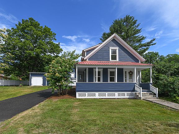 Step into timeless elegance with this beautifully renovated 1869 vintage charmer, perfectly situated just a stone's throw from downtown Bridgton. Enjoy the best of both worlds—historic character and modern updates—all within minutes of lakes, ski resorts, shopping, and local dining. This spacious and inviting home features three-plus bedrooms, including one conveniently located on the first floor. The open-concept kitchen and living room is a showstopper, with a large butcher block island, oversized pantry closet, and a cozy propane fireplace in the living room. A spacious dining room with a wall insert fireplace adds warmth and ambiance, making it perfect for hosting gatherings. A versatile bonus room on the first floor is ideal for a home office or study. The refinished original floors highlight its classic beauty. Upstairs, you'll find two additional bedrooms and a full bath with laundry, offering both comfort and convenience. A large mudroom connects to an attached two-story garage, providing ample storage space, while a second detached garage offers even more possibilities—workshop, studio, or additional storage. Sit and relax on the covered porch. Outside, enjoy a large, level yard—ideal for gardening, outdoor activities, or relaxing in the fresh Maine air. Don't miss this opportunity to own a piece of Bridgton history with all the modern comforts. Schedule your showing today and discover why this lovingly updated home is a true gem!