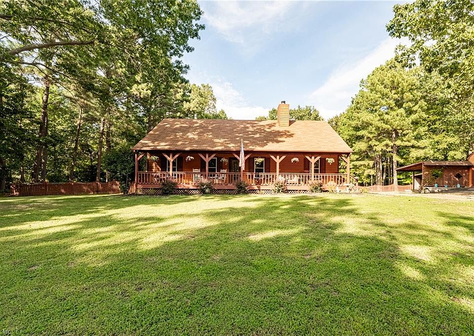 This delightful ranch-style home sits on a spacious 1-acre lot and offers just under 1,500 square feet of comfortable living space. Featuring an open floor plan, this home includes 3 bedrooms, 2 full bathrooms, a lovely living space. Storage is plentiful, with a detached garage, two attached carports, an additional carport at the rear of the house, and extra storage space. The property also has water access nearby, great for outdoor enthusiasts or those with a boat. Designed for both relaxation and entertaining, you'll love the inviting front porch, a cozy fire pit in the backyard and the country feel in the middle of the city. Located just around the corner from Surry Seafood and Marina and only minutes from the Jamestown-Scotland Ferry, it’s an ideal spot to bring your boat and enjoy all that the area has to offer.