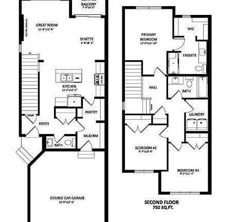 The Eden is designed for contemporary living. Entering this home, you are welcomed by a half bath, closet and convenient walk-through mudroom and pantry leading to the central kitchen. The main floor opens up to reveal a spacious great room and dining area, leading to the covered balcony - a perfect retreat to enjoy year round. The second level boasts a primary bedroom with ample space, including an ensuite offering dual sinks and adjacent walk-in closet. Upstairs also offers two secondary rooms, a bathroom, and laundry area. To round out this home, the attached double-car garage provides secure parking and additional storage space. Photos are representative.