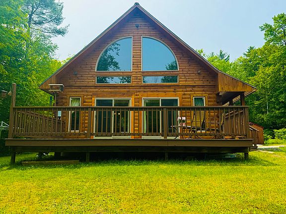 This exceptional custom log home is tucked away on 3.03 private acres in a peaceful setting! It has been lovingly maintained & cared for by one owner. There are so many special touches throughout this home! Wide plank pine flooring, exposed beams, a stunning wall of glass, pretty light fixtures, & handcrafted pottery accents. The light-filled main living space features a soaring cathedral ceiling and a cast iron woodstove to keep you warm in the winter. Open concept dining & living areas flow effortlessly to a well appointed kitchen. This space has been tastefully updated with yellow birch shaker style cabinets, newer appliances, gleaming granite, a substantial island, & a pretty backsplash. On the 1st floor there are two gorgeous bedrooms with ample space. The larger one has double closets & a sliding glass door to the porch. The1st floor bathroom has a nice walk-in shower, gorgeous pottery sink, & laundry area. Tucked away on the 2nd floor, the primary bedroom boasts a balcony, cathedral ceiling, spacious walk-in closet, & lovely en suite bathroom. The cozy loft space is perfect for a sitting area, office, or craft room. This property also offers tons of storage! There is a 10'x20' mini barn & 8'x14' shed for all of your lawn equipment & toys. The full basement has built-in shelving & a workbench. Other features include a heat pump, Generac generator, Nutone vacuum system, & ADT security system for peace of mind. This private oasis has established perennial gardens, berry patches, abundant wildlife, & woodland areas to enjoy! Relax on the front porch with a good book & host summer gatherings on the expansive back deck. This home is conveniently located! Minutes to shopping, restaurants, schools, golf courses, trails, & the casino. It's only a few minutes to the public beach on Tripp Lake & 10 minutes to public access on the Range Ponds. It's an easy commute to Lewiston or Portland. Make this quintessential Maine log home yours! It's a rare offering!