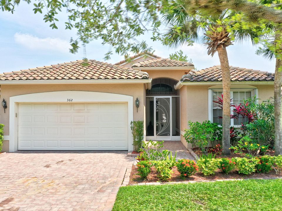 This lovely 3 bedroom, 2 bathroom, 2 car garage, CBS home is in move-in condition. Freshly painted interior with LED recessed lighting. High ceilings and tile flooring in living areas. A private screened-in patio with a jetted wading pool and view of the lake. Kitchen features include a gas stove, dishwasher, microwave and newer refrigerator. Master bathroom has dual vanities, a roman tub, and separate shower. HVAC 2014. Water heater 2015. Accordion shutters for storm protection. Seller is offering $2,000 towards buyer's closing costs. The Cascades 55+ community offers a 26,000 sq ft clubhouse, resort-style pool, 9 hole par 3 golf course, tennis, shuffle board, bocce ball, pickle ball, and more. Clubhouse amenities include a ballroom, media room, card rooms, billiards, fitness center,