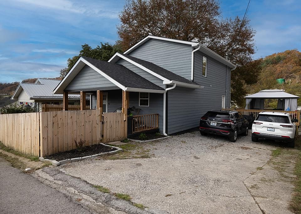 This beautifully upgraded 4-bedroom, 2-bath home has been completely redone from the studs up, offering a fresh, modern open-concept design perfect for entertaining. The spacious kitchen features white Shaker cabinets, butcher block countertops, stainless steel appliances, and flows seamlessly into the bright and inviting living area. Off the hallway is a large pantry and a primary suite, which includes a spacious walk-in closet. The first floor also features a stunning full bath with a walk-in shower and double-sink quartz vanity, along with a utility room at the back of the home. Upstairs, you'll find 3 bedrooms & a full bath.
