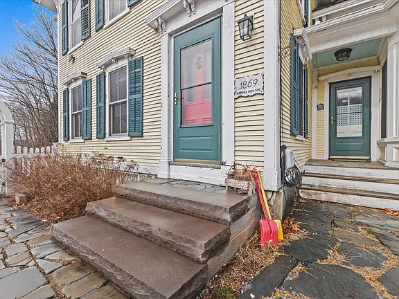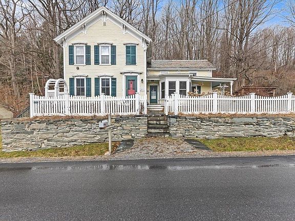 Nestled on 3.5 wooded acres, this charming 1869 Vermont farmhouse sits directly across from the Lamoille River and the Fairfax Hydro Falls, where the soothing rush of water sets the soundtrack to everyday life. Offering nearly 2,665 sq. ft. of living space with four bedrooms and three baths, the home gracefully blends timeless character, wood floors, period trim, slate roof with comfort and versatility. Mornings begin with coffee in a sunny breakfast nook while you watch the river sparkle across the way, the steady voice of the falls drifting through open windows. Sunlight pours across the wood flooring, creating a warm, inviting atmosphere. The flexible layout offers spaces for quiet reading, working from home, formal dining, or gathering in the expansive living room, where a beautiful fireplace anchors the space and adds evening ambiance on cooler nights. Upstairs, the primary suite is a private retreat with walk-in closet, ¾ bath, and windows that primarily overlook the river. Outdoors, a fenced yard provides room to roam beneath shady trees, while a detached two-car garage and workshop/shed supports hobbies and storage. At sunset, sit on the porch as golden light settles over the river, the air filled with the calming rush of the falls and the gentle rhythm of Vermont’s seasons. 362 River Road is more than a residence; it’s a sanctuary where history, comfort, and nature meet, offering a lifestyle as restorative as the water flowing just beyond your door.