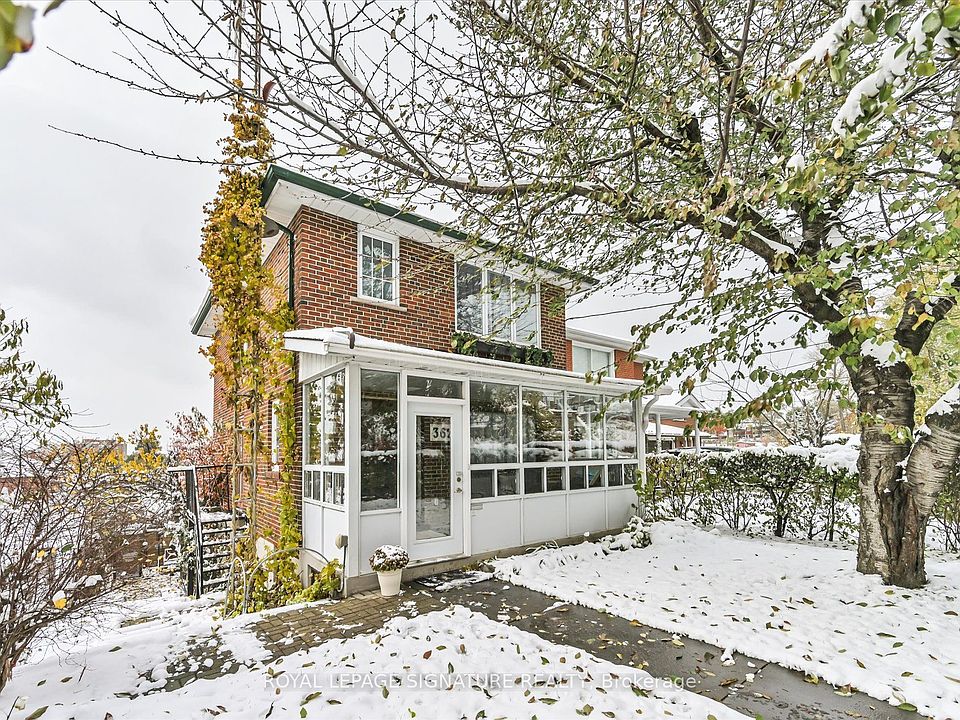 Beautiful two-storey detached home ideally located near the new Eglinton Cross-Town LRT, with quick access to Highways 400 and 401. Features a detached one-car garage with a private laneway.This home offers multiple premium upgrades and includes three bedrooms and two bathrooms. The primary bedroom overlooks stunning spring blossoms, while the nursery features a cozy built-in window seat and bookcase. The second-floor bathroom boasts heated floors, built-in storage, and elegant marble finishes.The open-concept kitchen and dining area feature a heated marble floor and induction cooktop. The high-ceiling basement includes a wood-burning fireplace, walkout to the backyard, and a separate entrance-ideal for a potential studio apartment.Surrounded by lush greenery and mature trees, the property offers a terraced side garden perfect for plant lovers and a landscaped backyard centered around an apricot tree. Perched on a hilltop, the home is filled with natural light and offers stunning sunset views.Additional highlights include a spacious cantina, solid brick construction, high-mount digital TV antenna, new plumbing and wiring, a tankless hot water heater, and a new A/C unit.Blending vintage charm with modern comfort, this home offers character, warmth, and convenience in one of Toronto's most desirable locations.