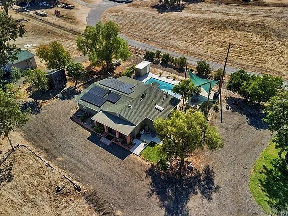 Seller is open to a 2/1 RATE BUYDOWN on this beautifully newly remodeled home and separate ADU on a 3+ ACRE, fully fenced and mostly flat lot with SOLAR. Plenty of room for horses or other livestock. Main house features 2 bed, 2 bath with an amazing kitchen in an open floor plan. Kitchen, bathrooms, flooring, windows, new electric & plumbing was completed by previous owner. Opens to the pool & deck area. Detached building can be an office or ADU with its own full bathroom, fridge and sink room for electric cooking plate to make it a full kitchen. Pool & deck has been newly resurfaced & newer pool equipment installed. Several outbuildings/sheds including a large one that can fit up to 3 cars. 2 fenced dog runs/kennels. Connected to city/district water, owned propane tank, features solar panels! So much potential can be found in this Ramona oasis.