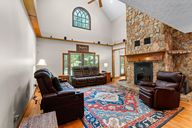 Dramatic stone fireplaceMain-floor primary suiteLarge islandOpen dining roomSunny breakfast nookModern kitchenAmple pantry space