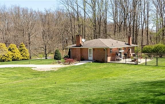 PRIVACY, PEACE, SERENITY..... If those sound perfect, this home may be what you've been searching for! Move-in-ready brick ranch on just under 4 wooded acres. Home is pristine and meticulously kept! Doors from dining room lead to relaxing patio and partially fenced backyard. Enjoy the convenience of a powder room off of the master along with an additional full bath in the huge finished game room. Tons of storage in basement, also a shop area with separate walk-out entrance.