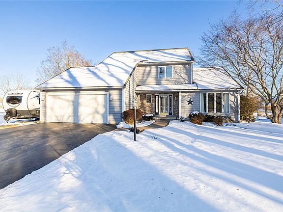 Open House has been rescheduled to Tuesday, 1/27 from 4:45-6:15 due to winter storm. Welcome to this exceptional 3 bedroom, 2.5 bath home nestled in the highly sought-after Webster School District! From the moment you step inside, you’ll be drawn to the sun-filled living room featuring soaring vaulted ceilings, skylights, and a warm gas fireplace. The spacious kitchen is a dream for everyday living and entertaining, offering granite countertops, abundant prep space, and generous storage. A first-floor half bath and laundry area adds everyday ease. Upstairs the primary suite serves as a private retreat, complete with an oversized jetted tub with dual waterfalls for spa-like relaxation. The partially finished basement provides flexible bonus space for work, play, or guests. Outside, escape to your expansive fully fenced backyard, where you’ll find a large deck, fully stocked goldfish pond and a cozy firepit—perfect for unwinding or hosting memorable gatherings. An additional gravel pad added in 2024 offers the convenience of extra parking or RV storage. Be sure to ask your agent about the extensive list of updates (all of the big ticket items have been taken care of for you!). And don’t forget to click on the video below to truly experience all this home has to offer! Delayed Negotiations will take place on Thursday, 1/29 at noon.