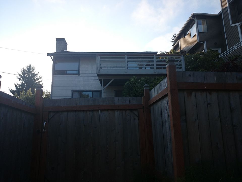Incredible potential for builders or renovators! Home sits on a large 6600 square foot alley to street lot with sweeping westerly views overlooking the Ship Canal, Puget Sound and the Olympics. The main floor has a spacious open living and dining area with 2 bedrooms and full bath. Downstairs boasts high ceilings and beautiful views as well. Detached 2 car garage.