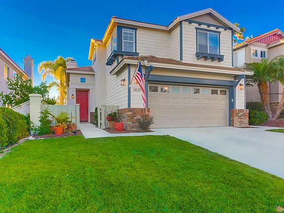 Welcome to this stunning home with panoramic view inside a double cul-de-sac location. The downstairs features a vaulted ceiling in the living room, a separate formal dining room, 1 BR/BA, and a kitchen/breakfast area adjoined to a family room w/ fireplace. This home has granite counter tops, appliances replaced (July 2022-fridge/oven/microwave/washing machine), and a tri-fold door from the kitchen that opens into a beautiful and private yard. Upstairs has 3BR/2BA and a laundry room. Master BR has a sprawling layout, walk-in closets, and access to an attic room for extra storage. Great neighborhood with easy access to highly rated schools, Highway 78 and Interstate 5. Utilities paid by tenant. Owners pay monthly house cleaning / yard services / HOA.