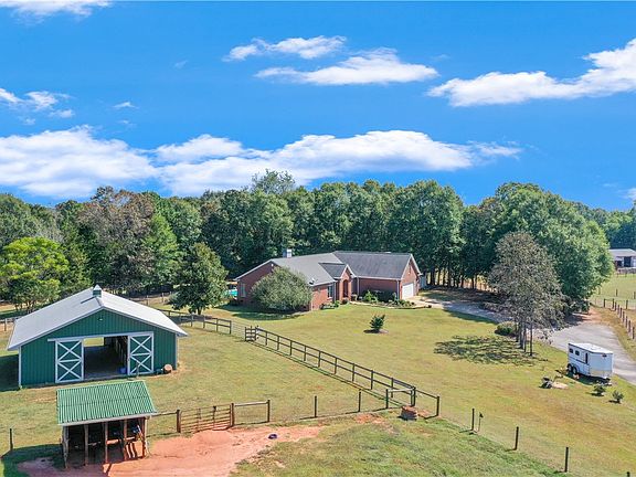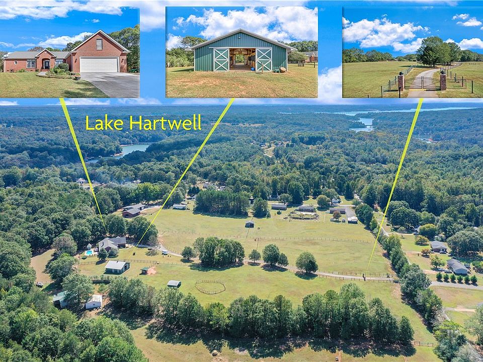 EQUESTRIAN ESTATE IN ANDERSON - Gated turn key farm is a horseman's dream!!!! Built on over 11 Acres the custom built barn, captivating brick home with pool and charming veranda and patio offer an unparalleled retreat from the hustle and bustle of daily life. This private sanctuary is fully fenced and secluded from the road. Just minutes from the NEW Clemson Vet School, and steps from Lake Hartwell this property provides an idyllic setting to reconnect with nature and embrace the serenity of the outdoors.