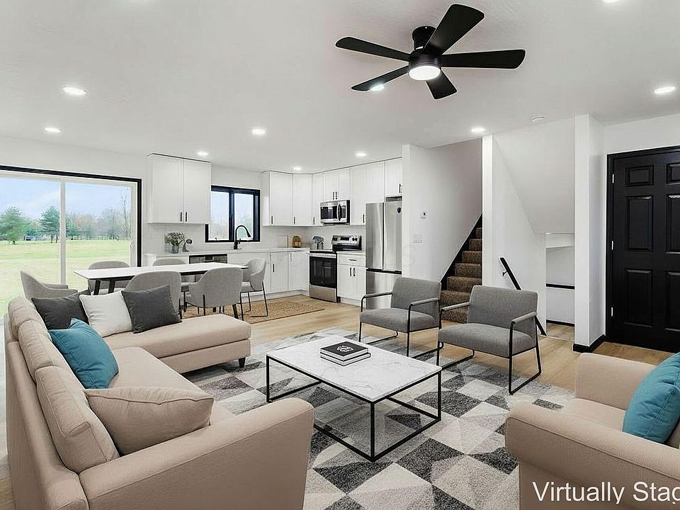 Step inside to find an open-concept living space featuring new flooring, recessed lighting, and a neutral color palette that complements any décor. The brand-new kitchen boasts granite countertops, stainless steel appliances, and a spacious island perfect for entertaining.
