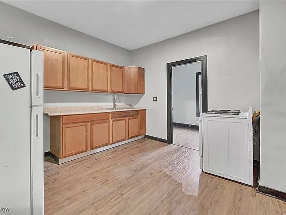 Remodeled 2 bed 1 bath back unit in a duplex home in Slavic Village. New floors, new bathroom, freshly painted, new windows, new roof, this unit has been completely updated. Kitchen comes with a stove and fridge. Bathroom features a new stand up shower (no bathtub), new vanity and bathroom fixtures. Oversized living room, walk in closet off the bedroom and closet in the bathroom. Quiet neighborhood.