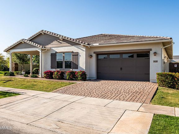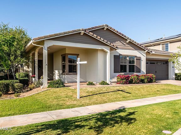 An absolutely gorgeous home in turnkey mint condition. Please show your fussiest of buyers this one. Located in the very desirable Lakeview Trails South at Morrison Ranch. This floorplan offers an office and flex room, wood looking floors and brand new carpeting. En-suite suite master bedroom offers privacy from the other bedrooms. The kitchen offers beautiful quartz counters with a large island, full backsplash wall. Upgraded appliances with 2 ovens. Tankless water heater. Water softener and RO system are leased. One of the best features is its location, sitting next door to a green belt and a single story offset behind, so you feel like no one is behind you. The garage is fully-finished with epoxy flooring. Truly one of the best neighborhoods in all of Gilbert.
