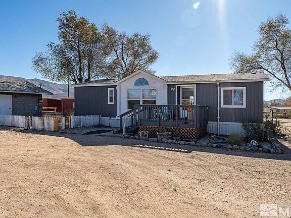 2.5 view acres with Arena and 6 outbuildings, barns, chicken coup, hay barn, tack barn, Horse Barnes w/fenced and low maintenance acreage. Upgraded 3-bedroom, 2 bath converted manufactured home. Close to lake and open range to ride your horses. Minutes from Tahoe and Carson City/Reno. New furnace, central air, water heater, and water purification system. Move in condition. This won't last, Assessor shows 2 bedrooms, this is a 3-bedroom home. Laminate replaced in kitchen and dining. Newer carpet in living room but sufficient laminate included for living room.