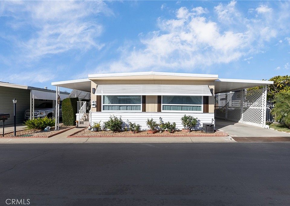 Welcome to one of the most sought after communities located in La Verne Mobile Country Club, A vibrant 55+ Senior community. This Double wide beauty has plenty of upgraded features and a spacious floorplan with two huge bedrooms, with the Master Suite to be very spacious and two full bathrooms perfect for comfortable living. Home has been totally upgraded freshly painted and fully landscaped home offers granite counters white cabinets laminate flooring through out, to many upgraded to list, also part of the patio was converted into a office space just adding more space for you and your family home also offers a wet bar upgraded bathrooms and so much more, many fruit trees in the back yard newer AC and furnace . The community also offers multiple clubhouses with pools and spa BBQ areas and dog parks for your furry little friends, Pets are welcome Homes is also close to medical , food, and anything else you may need including the 210 fwy. And finally enjoy the serene mountain views perfect blend of community living at the LA Verne Mobile Country Club.