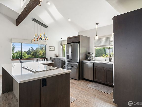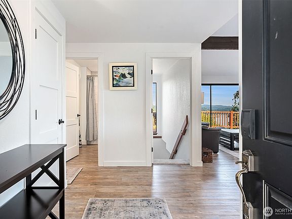 Take in the stunning views of Mount Rainier and the Puget Sound from this beautifully remodeled home, featuring convenient one-level living with three bedrooms and laundry all on the main floor. The primary suite includes its own private bath, while the open-concept living area flows seamlessly into the dining and kitchen spaces, perfect for entertaining. Step outside to a spacious deck overlooking the water and mountains, surrounded by nicely landscaped grounds. Downstairs offers an additional flex room and full bathroom for guests, large recreational area and an extra workshop garage. Enjoy air conditioning & newly installed solar panels that provide energy efficiency. This turn-key home blends comfort, convenience & breathtaking scenery.
