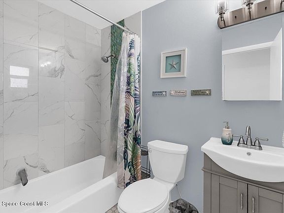 Step into serenity with this beautifully updated 1-bed, 1-bath condo nestled on the sandy shores of Cocoa Beach—where the beach is literally just steps away. Located in a friendly, oceanfront community, Unit #32 blends modern comfort with relaxed coastal living. Inside, enjoy carpet, tile, and laminate flooring, a stylish galley kitchen with gray cabinetry, white appliances, and a sleek backsplash. The cozy dining area flows into a bright living room with sliding glass doors leading to a screened-in porch—perfect for relaxing bug-free. The bedroom features a built-in closet, while the bathroom includes a shower/tub combo and gray vanity. A laundry room with built-in shelving adds convenience. Whether sipping morning coffee on the porch or enjoying sunset beach strolls, this charming condo offers effortless beachside living. Ideal as a full-time home, vacation getaway, or investment. Welcome home—where the ocean is your backyard.