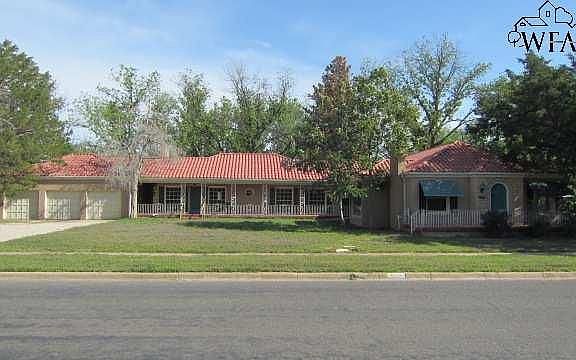 Very well maintained Native stone & brick 3br/2bath home with Tile Roof, 3-car garage Has a basement with exterior & interior access. 2 living areas one with Stone fireplace, Custom built Gun&Pool cabinets, the other with formal finished hardwood flooring. A large Study with all hardwood walls and a gas fireplace.