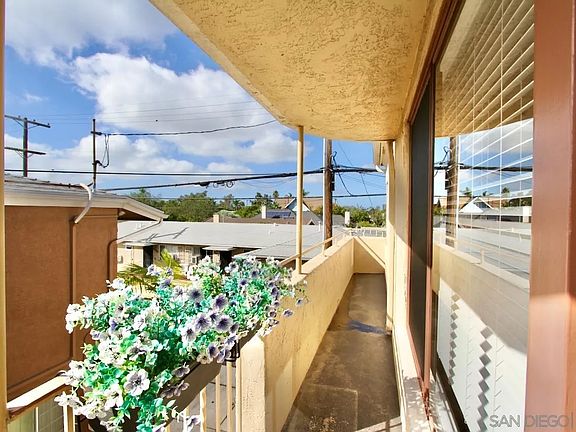 Discover timeless charm in this top-floor, end-unit condo tucked away in a 1939 Art Deco building that was converted to condominiums in 2006. This 1-bedroom, 1-bath residence offers 548 square feet of stylish living space infused with vintage character and modern updates. Original hardwood floors have been beautifully refinished, complementing freshly painted interiors, newly painted kitchen cabinets and updated hardware, and brand-new window blinds. Unique Art Deco details abound—from original doors and hardware to classic light fixtures and a decorative wall niche that nods to the building’s architectural heritage. The spacious layout feels bright and inviting, with generous storage throughout. As an end unit, it shares only one wall and enjoys wraparound exclusive-use outdoor space—perfect for relaxing or entertaining. Additional highlights include a private one-car garage accessed via the alley and free community laundry conveniently located just steps from the unit. Ideally situated within walking distance to Balboa Park, local shops, and restaurants, this condo blends historic allure with urban convenience in one exceptional home.