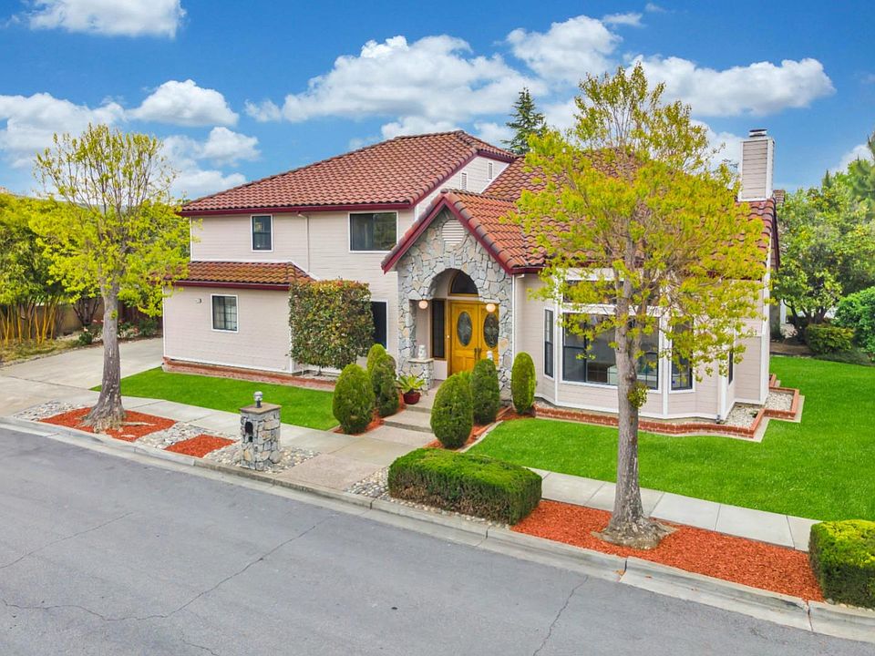 Custom-built luxury home with numerous upgrades. Bright and airy with super high vaulted ceiling and spiral staircase. 1 bedroom 1 bath downstairs; 4 very large bedrooms and 3 full bath upstairs. Two bedrooms and balcony with hill views. Corner lot with views on 3 sides. Spacious 3-car attached garage. Mature fruit trees. Easy access to Hwy 880, 84, BART, Amtrak. Family-friendly neighborhood, very close to elementary school. Award-winning public schools: Warwick Elementary, Thornton Jr, American High.