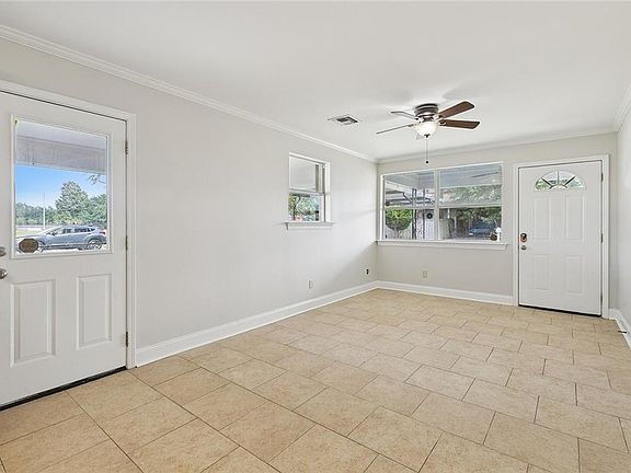 This move-in ready three-bedroom, two-bath brick home is conveniently located across from Nunez Community College in the heart of Chalmette. The home features all tile floors, and the primary bedroom includes a side entrance and a full bath, making it great for a home business or guest suite. The open living room and kitchen provide access to the covered carport, well-suited for outdoor entertaining. Additionally, there is a large metal shed for storage or use as a workshop. The updated windows are equipped with functional shutters. The roof is only 3 years old. In a X flood zone.