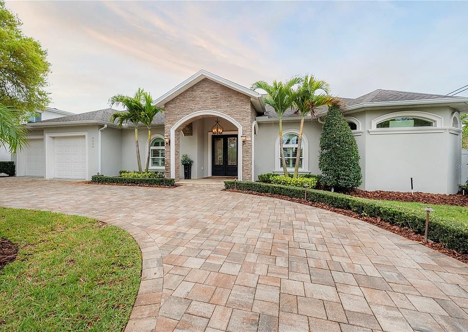 Experience luxury living in this meticulously crafted, better-than-new one-story contemporary home situated on an oversized corner lot, this stunning property boasts 5 bedrooms and 3 Bathrooms in an open floor plan, offering ample space for comfortable living and entertaining. Key Features include a private resort-style pool with lush, private landscaping, complemented by an outdoor kitchen area equipped with a gas grill and refrigerator, perfect for hosting gatherings with friends and family. A gourmet Kitchen featuring top-of-the-line Viking appliances, including a range, convection ovens, refrigerator, an oversized island, breakfast bar and separate dining room provide ample space. An Expansive Primary Suite, complete with a custom-designed closet and a luxurious master bath featuring dual vanities, a large walk-in shower and separate soaking tub. Other Notable High-End Upgrades include high energy-efficient features, a whole house Generac generator system, water softener, tankless water heaters, 10 ft ceilings, extensive storage and built-ins, a split bedroom plan, water filtration system, plantation shutters, great room wet bar with wine storage, and a stone wall with a gas fireplace. Sidewalk right out the front door takes you to Bayshore Blvd, less than one mile away! Tampa's top public and private schools, Tampa International Airport, fine restaurants, and luxury shopping destinations close by. No Flood Insurance Required, Not in a Flood Zone.