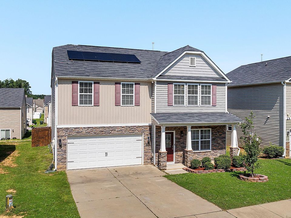 Welcome to this beautifully 4-bedroom home with a spacious loft, private office/flex room, and 2-car garage with Solar Panels Included. Located just minutes from vibrant Downtown Raleigh and the popular White Oak Crossing with over 100 shops and restaurants! Step inside to a bright, open floor plan featuring a cozy gas log fireplace in the family room—perfect for relaxing evenings. The gourmet kitchen boasts granite countertops, a center island, ceramic tile backsplash, stainless steel appliances, and pantry. Upstairs, you'll find an oversized primary suite with a soaking tub, dual vanities, walk-in shower, and large walk-in closet. The versatile loft space is ideal for a media room, playroom, or second living area. Enjoy comfort, space, and unbeatable location in one of the area's most desirable communities!