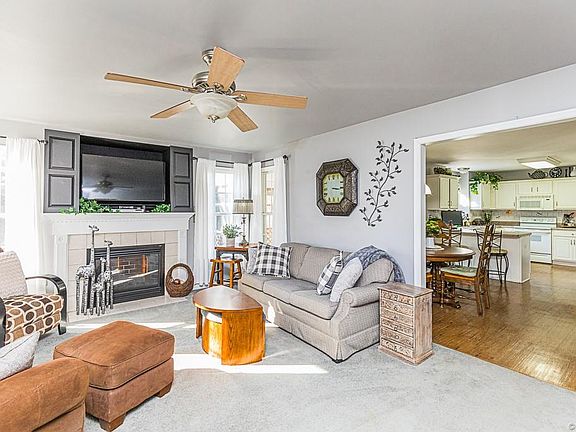 This Beautiful Transitional Ranch offers almost 1800 sq ft, First Floor Master Suite with 2 additional bedrooms, 2.5 baths, 2 car garage, and a nice half acre cup de sac lot. The exterior has maintenance free vinyl siding, paved driveway, full front porch, large exterior shed, private lot, and 13X13 rear screened in porch. The interior offers a nice flowing floorplan with a lot of space. The family room has a gas fireplace and ceiling fan and opens to the huge eat in kitchen with a breakfast nook, lots of cabinets, large pantry, breakfast bar, tile backsplash, desk sitting area. The dining room offers hardwood flooring, crown/chair moldings, and ceiling fan. The first floor Master Suite offers great natural light, ceiling fan, a large walk in closet, and a renovated master bath with walk in shower, LVP flooring, and nice vanity sink with make up area. Bedrooms 2 and 3 are nice sized and offer large closets and ceiling fans. Other features include a large laundry room with extra storage space, large walk in attic/storage area, gas heating, and central air. Close to all interstates, shopping, dining, and entertaining. Must See!!!
