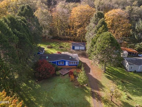 Imagine waking up to the sound of your private creek and enjoying coffee with mountain and forest views out your window. This isn't just a house; it's a private coastal escape. Spend your days hiking and fishing in the surrounding National Forest or take a quick 15-minute drive to the Pacific Ocean for beachcombing and sunsets. The acreage offers unparalleled privacy—a true sanctuary where you can recharge and connect with nature, yet you're just a short trip from local conveniences. Peace of mind comes standard with this home. New roofs on all of the buildings, new skylights, water heater and well sanitizer, fresh paint inside and out, low-maintenance luxury vinyl plank flooring and new carpet as well as new pex plumbing under the house. Situated on over an acre of usable land, the property provides endless opportunities from gardening and large gatherings to building a detached office or studio. The open-concept design is bathed in natural light thanks to the numerous skylights and oversized windows, creating a bright and welcoming atmosphere. The year-round creek not only adds a unique, serene water feature that few coastal properties can claim, but is also home to seasonal salmon spawning. Add to that an existing shop with a permitted bathroom, large shed and RV hookups and you're well on your way to one amazing place to call home.