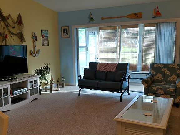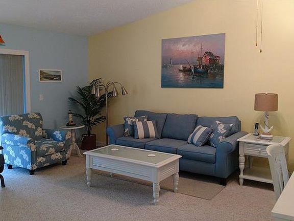 Looking for something with that beach feeling. Here it is! Tastefully decorated and furnished with soothing colors and tropical like funiture. Once you walk in, you won't want to leave. Big open living room with cathedral ceilings and sliding glass doors opening on the glassed in lania over looking a large green area. Very active community with a community pool, recreation center and more. Located just minutes to the white sand beaches, restaurants, golf, shopping and medical facilities.
