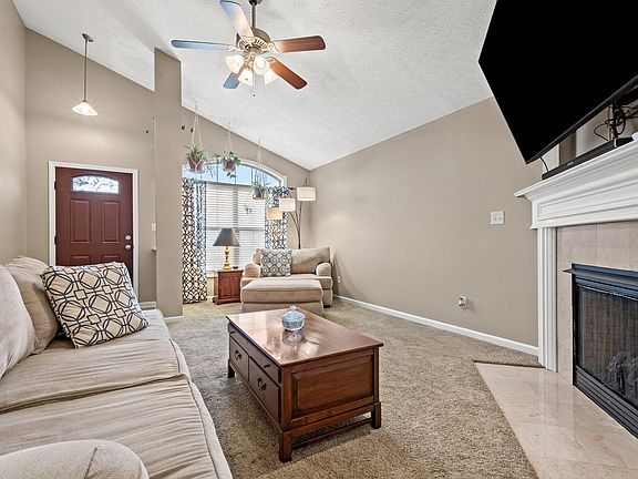 Super nice one-level home in The Home Place! Located on a quiet street, this 3-bedroom, 2 full bath home is ready for you! Lots to see including the large great room with gas log fireplace, vaulted ceilings, and plenty of natural light. The kitchen is large with cabinets galore, kitchen bar, a dining area, and tile counter tops and flooring. Off the kitchen is a bonus room with wood flooring- great for an office, playroom, or extra family room! Down the hall you will find the spacious primary bedroom with tray ceiling, walk-in closet and ensuite bathroom w/step in shower; 2 nicely sized bedrooms, full bathroom with tile flooring and laundry room. You will love the canopy covered back patio with a fan and wired for a TV while you enjoy your yard with a privacy fence. You will also have extra space to store your lawnmower and flowerpots in the storage shed too. Don't miss this one, schedule today!