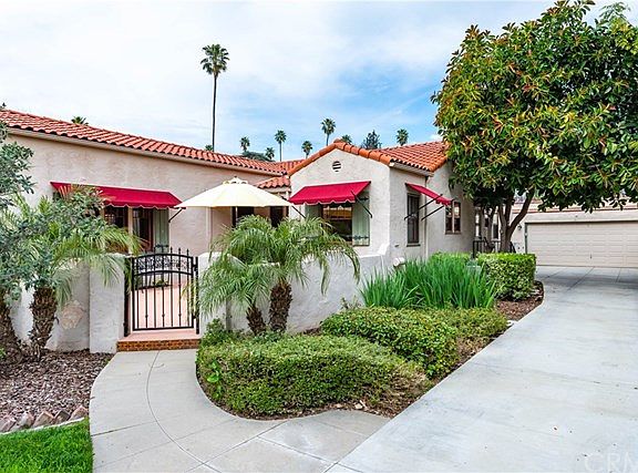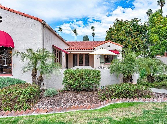 Charming Spanish Mediterranean beauty in the Wood Streets has been maintained to perfection! Greeted by the wrought iron gate into the inviting courtyard you will be swept away by this historic home. Stepping inside the foyer you are met with restored original hardwood flooring throughout most of the home. The living room is over-sized with a gas fireplace, original sconces, an attractive wood inlay on the floor, a large picture window and a high tray ceiling. Notice the details throughout the home such as the decorative archways, the floor to ceiling original windows in the dining room, original hutch in the kitchen nook as well as the original light fixture in the half bath. The coved ceilings that are carried throughout most of the home wrap you with warmness along with the beautifully painted plaster walls. The kitchen has an abundance of newer cabinets and stainless steel appliances. There are three good sized bedrooms and a den. The gorgeous full bath has been restored with the original tile and custom cabinetry. There are eleven energy efficient windows in the home, high energy efficiency ducting plus a whole house water filtration system. The two-car garage has been totally rewired and renovated with cabinets and sealed flooring. Artificial turf has been installed in the backyard to make maintenance a breeze. The home has been designated a "Structure of Merit #759" by the City of Riverside. Hurry to make your appointment today...this historic home will not last long!!