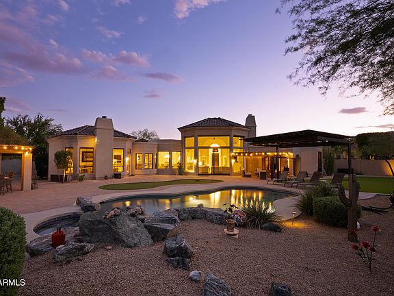 Full 300k kitchen remodel 2022; Outdoor Cantilever Canopy with sunshade and sunshades on rear ramade over 20k. Replaced sod with turf and added putting-green with 10-year warranty in 2021 at a cost of 18k; Full roof replacement with 7-15 year warranties and lifetime on tile underlayment and roof tiles convey; New front door Iron Works over 7k in 2021; Window Treatments & shutters with motorized roller shades in living areas 30k in 2019; New carpet in bedrooms and office 2018; new pool pump/heater 2018; New pavers, ramada, outdoor kitchen, pergola installed 2019 over 62k; Pool resurfaced and play shelf added over 14k in 2019; New Trane A/C Units 2020; All bathrooms have been fully updated including toilets, faucets, sinks, showers/tubs, vanity, etc. with Zero entry shower in Primary; New hard stong flooring thorughout all living areas and primary bed and bath; new floor-to-ceiling windows liing room; New windows Dining room. Exquisitely maintained and freshly updated, this home offers luxury, comfort, and iconic Arizona beauty all in one.