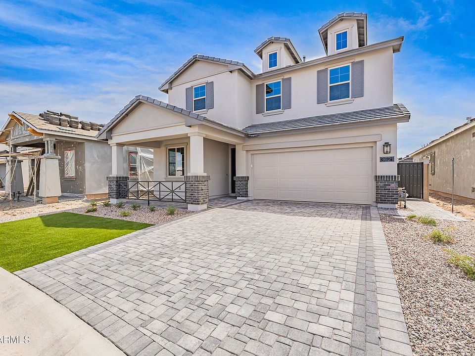 Builder 'Clearance' price! Seller finance contributions available! Brand new gated community. Dramatic Brick accented elevation with nice covered porch. Great infill location with desirable schools, freeway access during the weekdays and a great gateway location for the weekends to head to the Salt River watershed lakes, mountains or a local hike! Fully finished price with nice upgrade package, 8' IRON front door, KitchenAid Appliances, white Shaker style cabinets with tall uppers with LED lights underneath and a recycle center, 3 car garage with side exit door, wood look tile, upgraded carpet, 8' interior doors, nickel hardware. gas outlet for future BBQ, much more. Taxes est.