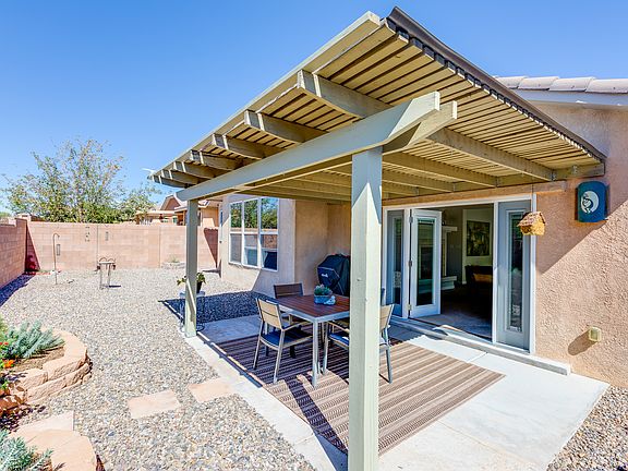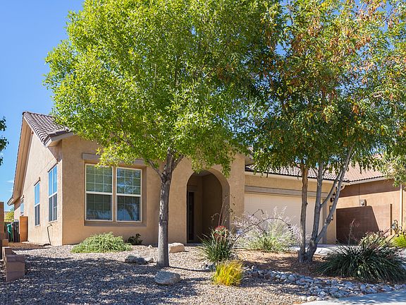Walk out the front door and see the view of Sandia Mountains! Pristine Pulte home in established neighborhood. This sought after one story home has been owner occupied and lovingly maintained. All stainless kitchen with new refrigerator and dishwasher. Freestanding dual fuel range gas stove/electric oven. Kitchen breakfast bar and informal dinette. Formal dining room. Fourth bedroom perfect for den. Newer 50 gallon water heater. Master suite has large tub with two sinks and walk-in closet. All windows newer matching 2" faux wood neutral blinds. Ceiling fans. Gas fireplace. Wired for alarm. Gas outlet for barbeque. Rear patio with ramada. Low maintenance yard with drip irrigation. Excellent school district. Walk to shopping. Safe, friendly neighborhood.