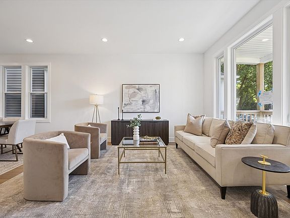 Nothing to do but move in to this flawlessly renovated 4-bedroom, 4-bath single family home in Irving Park! The current owner brought this home down to its studs, added a second floor, and completely redesigned the space with clean, modern finishes. A classic front porch with ample space for seating or a porch swing is the ideal space to relax. Natural light from large windows with south, east, and west exposures floods the entire living space on the main level. An open floor plan flows seamlessly through generous living spaces including a living room with enough space to accommodate two separate seating areas and a dining area with ample space to host both dinner parties as well as intimate affairs. Glass French doors open into the perfect home office conveniently located just off the kitchen. The chef's kitchen is appointed with stylish features such as veined quartz counters, Marfa cabinetry, stainless steel Bosch appliances, and access to a private deck overlooking the backyard - the perfect place for dining al fresco. A full bathroom completes this level. Upstairs, a serene primary suite features a large bedroom with south-facing views overlooking Richmond Street, a huge walk-in closet, and an elegantly appointed ensuite bath. Two additional bedrooms and another full bath occupy this level along with a closet fully plumbed and ready to hook up your washer and dryer. The lower level has a family room, a fourth bedroom, full bath, and an additional room perfect for a den, another home office, playroom, or hobby room. Plenty of green space abounds in the backyard, which leads to the detached, 2-car garage. This special home is situated on a quiet, tree-lined street within walking distance to Lane Tech and DePaul Prep with easy access to public transportation and the expressway, Target, Mariano's, shopping, restaurants, and all Irving Park has to offer. Welcome home!