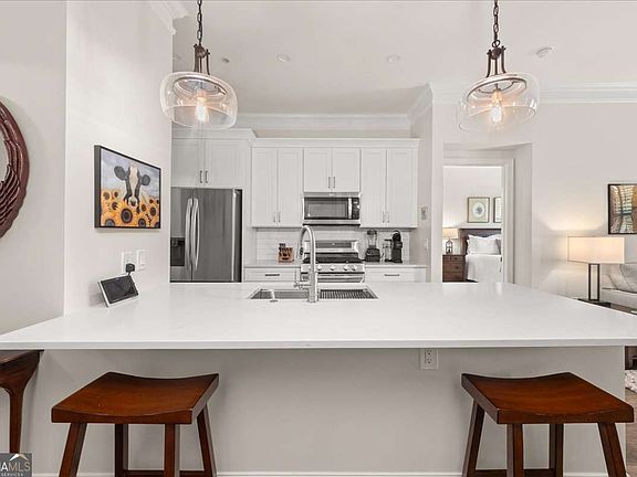 $10k BUYER INCENTIVE towards closing costs! Newly renovated 2-bedroom, 2-bathroom condo located in the heart of Historic Vinings. This home features ALL new cabinets, counters, tile, flooring, carpet, lighting and paint throughout. The kitchen offers a large island, new cabinets, quartzite counters, backsplash and appliances. This floor plan offers two master suites with large bathrooms and walk in closets. Enjoy the spacious master suite opening to a luxurious master bath featuring a large tiled walk in shower, double vanity with new cabinets, and quartz counters. Meticulously maintained condo with NEW HVAC, New Water heater, New Flooring, lighting, door hardware and all new finishes! The open floor plan has an abundance of windows and natural light, plus custom shutters for privacy. Relax on the private patio overlooking retail shops. Enjoy Vinings Main deluxe amenities including concierge, pool, fitness center, club room, guest suite, conference room and courtyard with fireplace. Two deeded parking spaces on SAME LEVEL in covered gated garage. Enjoy the perfect blend of charm and convenience just steps from Vinings Jubilee's shops, restaurants, fitness facilities, coffee shops, weekly farmers market and more.Live inside the perimeter with low Cobb County taxes. Whether you're downsizing or looking for the perfect intown retreat, this condo offers unbeatable walkability, style, and value in one of Atlanta's most desirable neighborhoods.