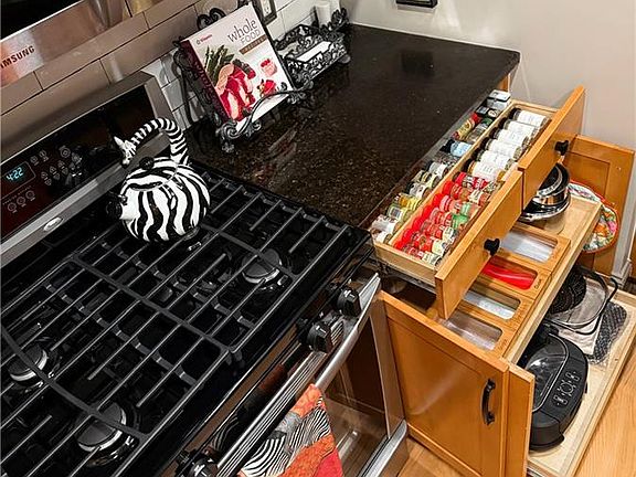 Stylish, low-maintenance living in an unbeatable location. This top-floor 1-bed, 1-bath condo in the heart of Historic Vinings Village with tons of upgrades and same level covered parking. Offering an open floorplan with soaring 10-foot ceilings. The standout kitchen features custom-designed Shelf Genie cabinetry for smart organization and slide-out convenience, new tile backsplash, granite countertops, stainless steel appliances, gas stove, and a functional breakfast bar with new recessed lighting. The spacious Owner’s Suite includes a walk-in closet with custom built-ins and a recently renovated spa-like bath with sleek black marble tile, a sleek freestanding soaking tub, glass-partitioned shower, double vanities. The laundry closet has upgraded upper cabinets for added storage. Relax on your large covered patio, or take advantage of resort-style
