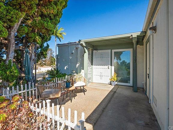 Welcome to this beautifully upgraded single-story residence in the desirable Oceana 55+ community. This charming home features laminate flooring, a modern kitchen with Corian counters, stainless steel appliances and custom backsplash, a spacious living room with large balcony, updated bathrooms, plus a front patio with HOA-approved fencing that creates a private outdoor space. The office can easily be converted into a 3rd bedroom and the enclosed atrium/courtyard offers endless possibilities—perfect for a sunroom or hobby area. Conveniently located near the community entrance and clubhouse, as well as being adjacent to the Emerald Isle Golf Course. Enjoy resort-style amenities including multiple pools, clubhouse, billiards, card and computer rooms, pickleball courts, and more. The HOA covers trash pick-up, and water and sewer are included, adding convenience and peace of mind. Ideally located near the Sprinter station, shops, restaurants, and freeways, this home offers the perfect blend of comfort, convenience, and active coastal living.