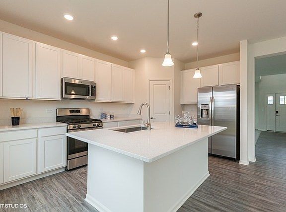 JULY DELIVERY! This Huntington opens to formal living room, dining room, powder room, laundry room, walk in closet and garage entrance.Gourmet island kitchen with Quartz counter tops, 42 upper Aristokraft cabinetry, and full stainless steel appliance package with refrigerator opens to the large family room. Upstairs there are four bedrooms, a massive owner's suite, featuring a luxurious private bathroom & large WIC. Large upstairs loft. Expanded Basement with rough-plumbing for bathroom. White painted two panel doors, white painted colonist trim, energy efficient package with 13 seer air conditioner, 95% furnace, 40 gallon, water heater, and James Hardie siding are standard features! Schlage Wi-Fi Smart Lock front door, Ring doorbell, and Wi Fi programmable thermostat! Sidewalk community with park and Community School District 301! Country setting yet minutes from Randall Road corridor with shopping and entertaining!