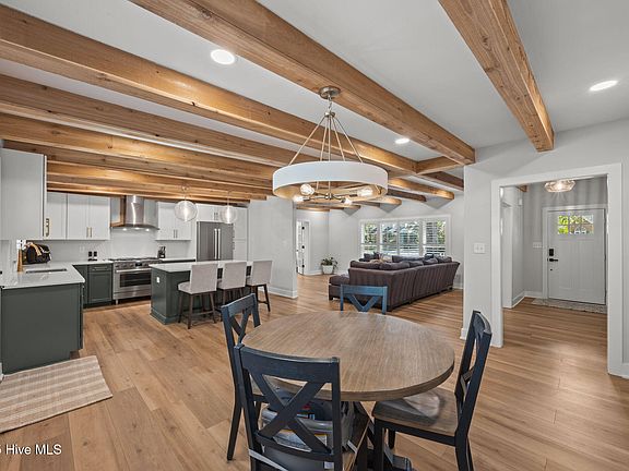Welcome to the heart of Trent Woods, where this charming 3-bedroom, 2-bath ranch blends comfort, style, and everyday convenience. Inside you will find soaring wood beams that flow seamlessly through the living room, dining room, and kitchen, creating a warm and inviting atmosphere. The open floor plan is airy and bright, designed for both easy living and effortless entertaining.