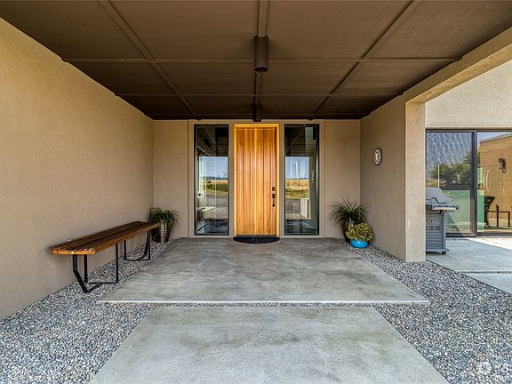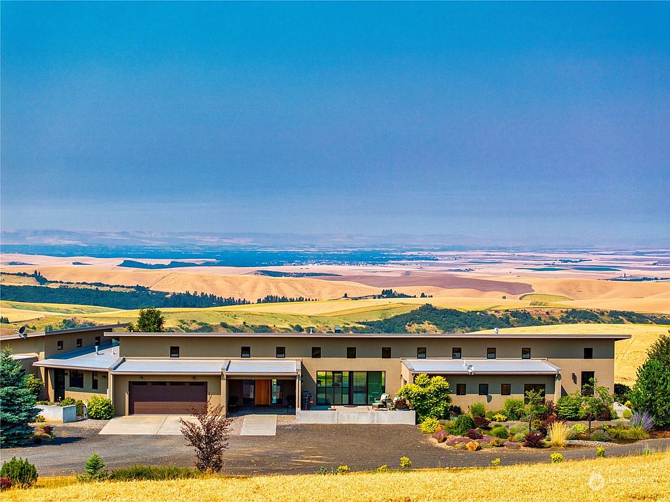 Experience sustainable luxury w/breathtaking views. This 40-acre estate, designed by architect Phillip Christofides, features 8-inch thick ICF walls for superior insulation & energy efficiency. Enjoy year-round comfort w/ a geothermal system, 3-zone radiant floor heating, & A/C. The 7,000 sq ft roof w/ deep eaves offer excellent sun protection & super insulation. Windows & doors designed for cross ventilation. All bedrooms have patio access, & the laundry/mud room includes a dog washing station. A 22K generator & a 700-foot deep well ensure reliability & pristine water. Includes extra 2 garage, greenhouse, & landscape irrigation. Just 21 minutes from Walla Walla Steak Co w/ panoramic views of the Walla Walla Valley, Cascade & Red Mountain.