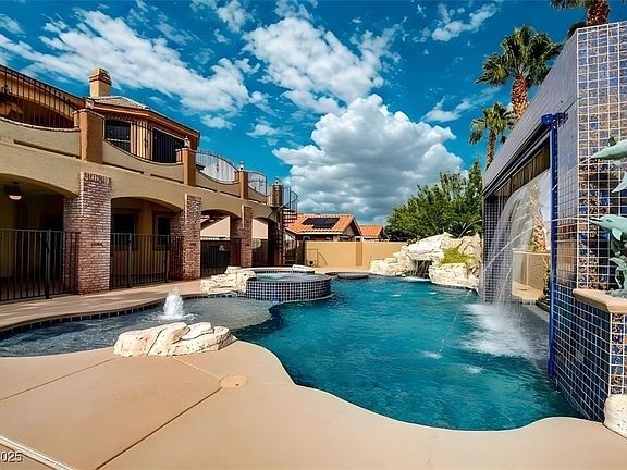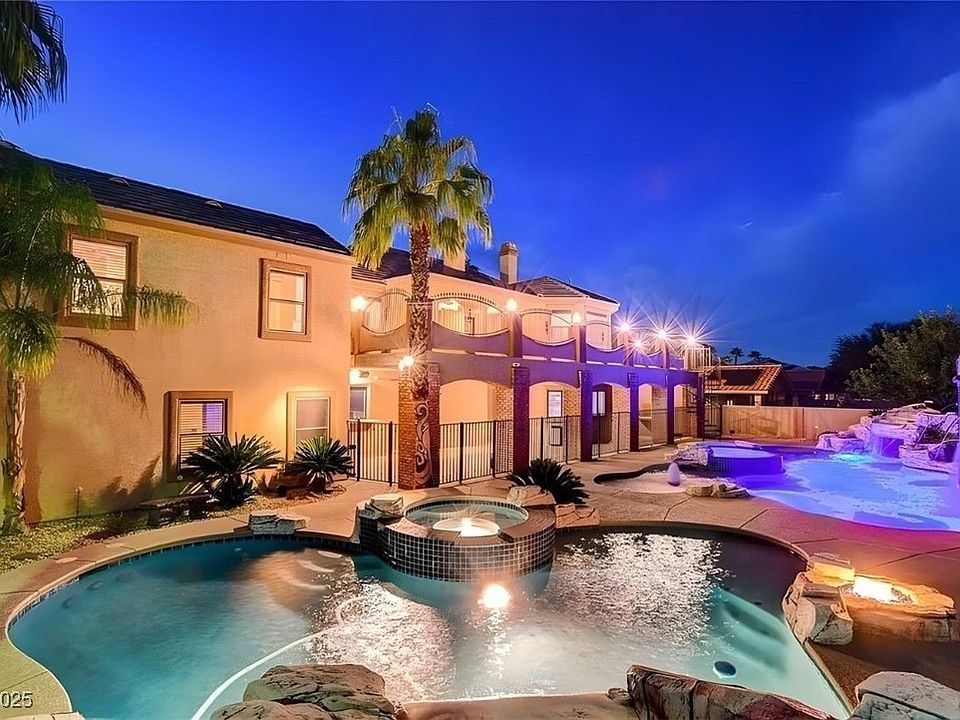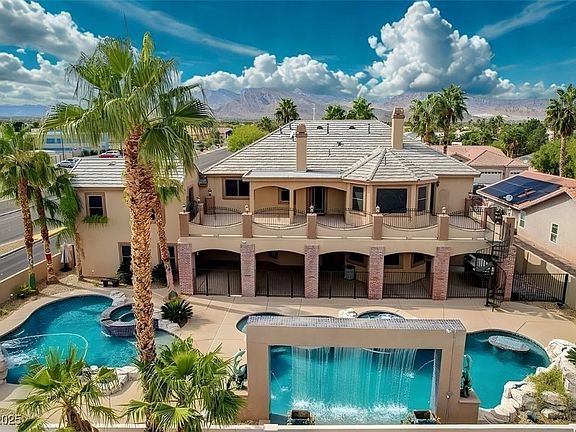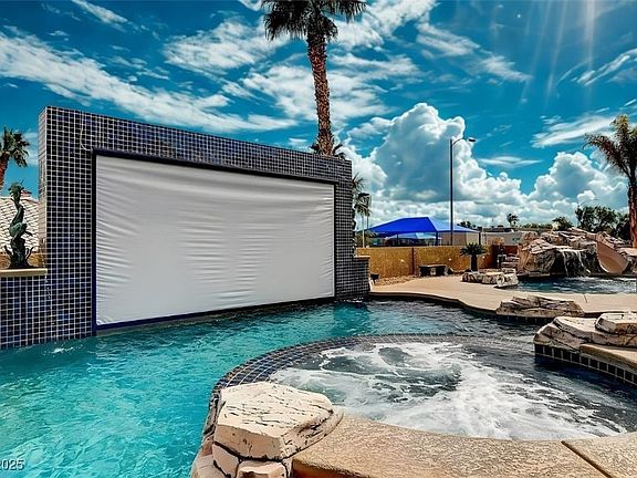 Resort-style living at its finest! This stunning custom estate w/ NO HOA features two pools/spa with waterfalls, grotto, water slide, fire features, built-in water table, drop-down movie screen w/ Klipsch outdoor speakers. A hidden bookcase door leads to a basement Alice in Wonderland-themed theater/game room with Star Wars mural, 9 electric recliners, and surround sound. The gourmet kitchen boasts stainless steel appliances, a large island with double ovens and cooktop, walk-in pantry, and formal dining room. Family room w/ wet bar, two wine fridges & cozy fireplace flows into two spacious dens. The luxurious primary suite offers a 3-sided fireplace, steam shower, jetted tub, custom walk-in closet, and balcony. The attached Next-Gen suite includes a private entrance, living room, kitchenette, spiral loft, and balcony. Additional perks: custom pet wash, built-in BBQ, huge covered patio, electronic gate, and 25x36’ RV parking.