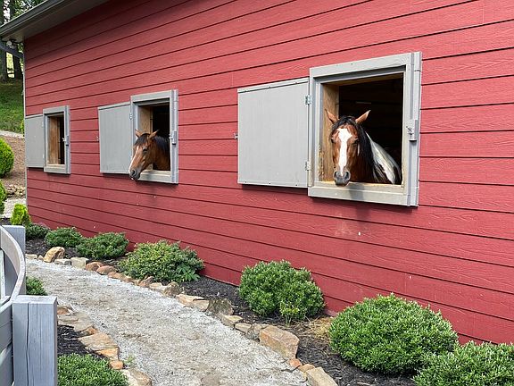 Moss Hill Ranch is a magnificent 50+ acre equestrian farm nestled in the picturesque surroundings of Clayton, Georgia. This exquisite property is a haven for horse enthusiasts seeking the perfect blend of natural beauty, tranquility, and state-of-the-art equestrian facilities. With its sprawling acres of lush pastures and well-designed amenities, this farm offers an exceptional opportunity for both professional and recreational equestrian pursuits. Four meticulously maintained pastures comprise more than half of the acreage, providing ample space to turnout, train, and ride your horses. The remainder of the landscape features a harmonious mix of open fields, three babbling creeks, wooded areas, horse trails, and manicured gardens, creating an idyllic backdrop for outdoor activities while maintaining utmost serenity. The far end of the property connects to the Bartram Trail for additional hiking, biking, and hunting, while the other end of the property is merely a 5-minute ATV ride to the Chatooga River, the only free-flowing body of water remaining in the southeast! The main barn, built just a few years ago, is a masterpiece of design and functionality. With 5 stalls---two of which can be converted into a mare and foal stall---your horses will enjoy maximum comfort and care. The barn also boasts a climate-controlled feed + tack room, dressing room, and bathroom; a hot + cold water concrete wash rack with drain; ample storage for equipment; and, a hay loft with access for a hay elevator. Every detail has been thoughtfully planned to ensure efficiency and convenience for both horses and owners. Beyond the main barn, Moss Hill Ranch offers additional equestrian amenities to captivate even the most discerning riders: freshly creosoted fence lines, a round pen, and EquiTred drainage, to name a few. For those seeking a harmonious place to unwind and relax, the property boasts two residences. The primary residence is a stunning Bonner and Buchanan custom home built in 2017, featuring 4 BD / 4.5 BA, on-trend finishes, a well-appointed kitchen, and outdoor space galore. Nanawalls in the great room and dining room open to a screened-in porch that amplifies the sound of rushing water from Dick's Creek, which runs along the perimeter of the home. An additional balcony with phantom screen in the master bedroom provides breathtaking views and enables you to soak in the tranquility of the surroundings. The 4 BD / 3 BA secondary residence---ideal for a caretaker's home or a true family estate---provides a comfortable retreat after a day spent with horses. Whether you are a professional equestrian seeking a training facility or a passionate horse lover yearning for a peaceful retreat, Moss Hill Ranch presents an extraordinary opportunity for all equine pursuits. This horse farm is a true hidden gem, where the beauty of nature, the well-being of horses, and the comforts of modern living seamlessly converge into a perfectly idyllic property. This is your opportunity to embark on an unforgettable equestrian journey in beloved Rabun County.